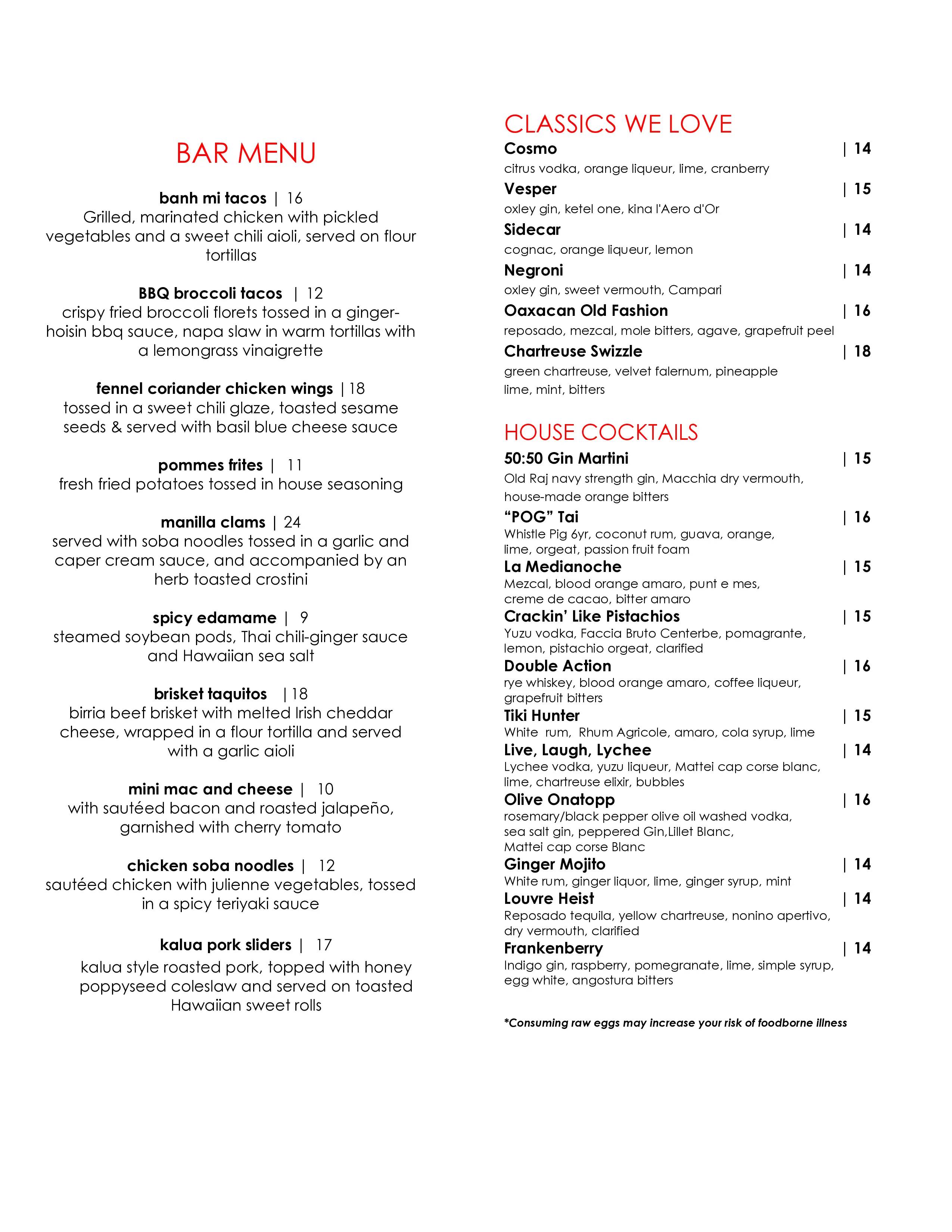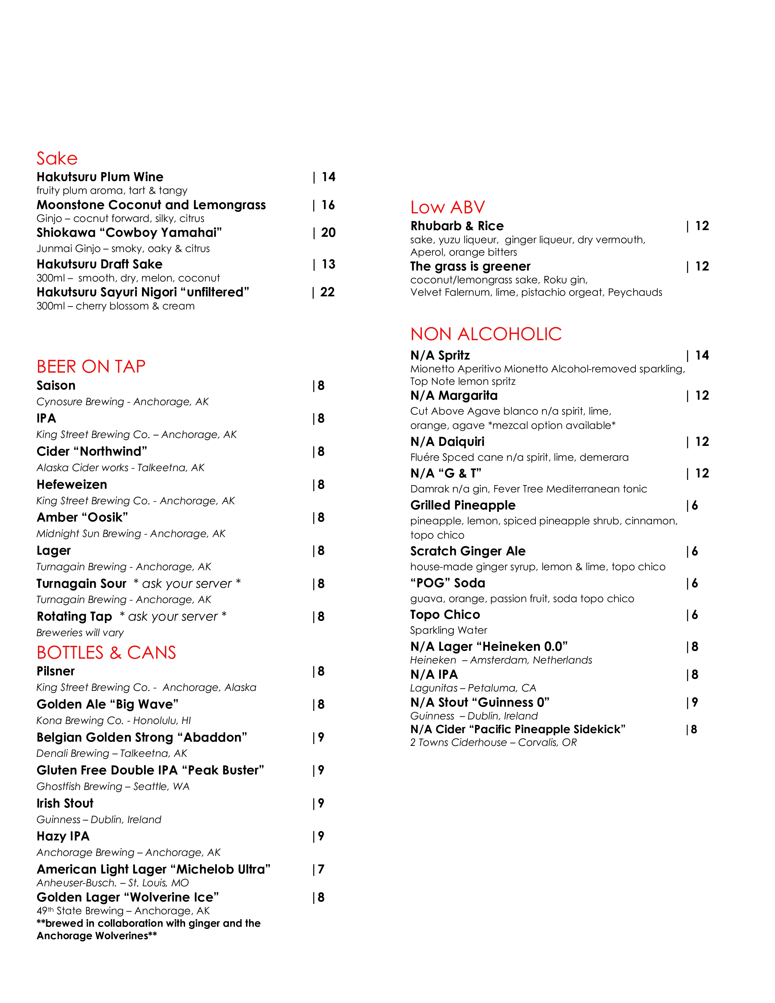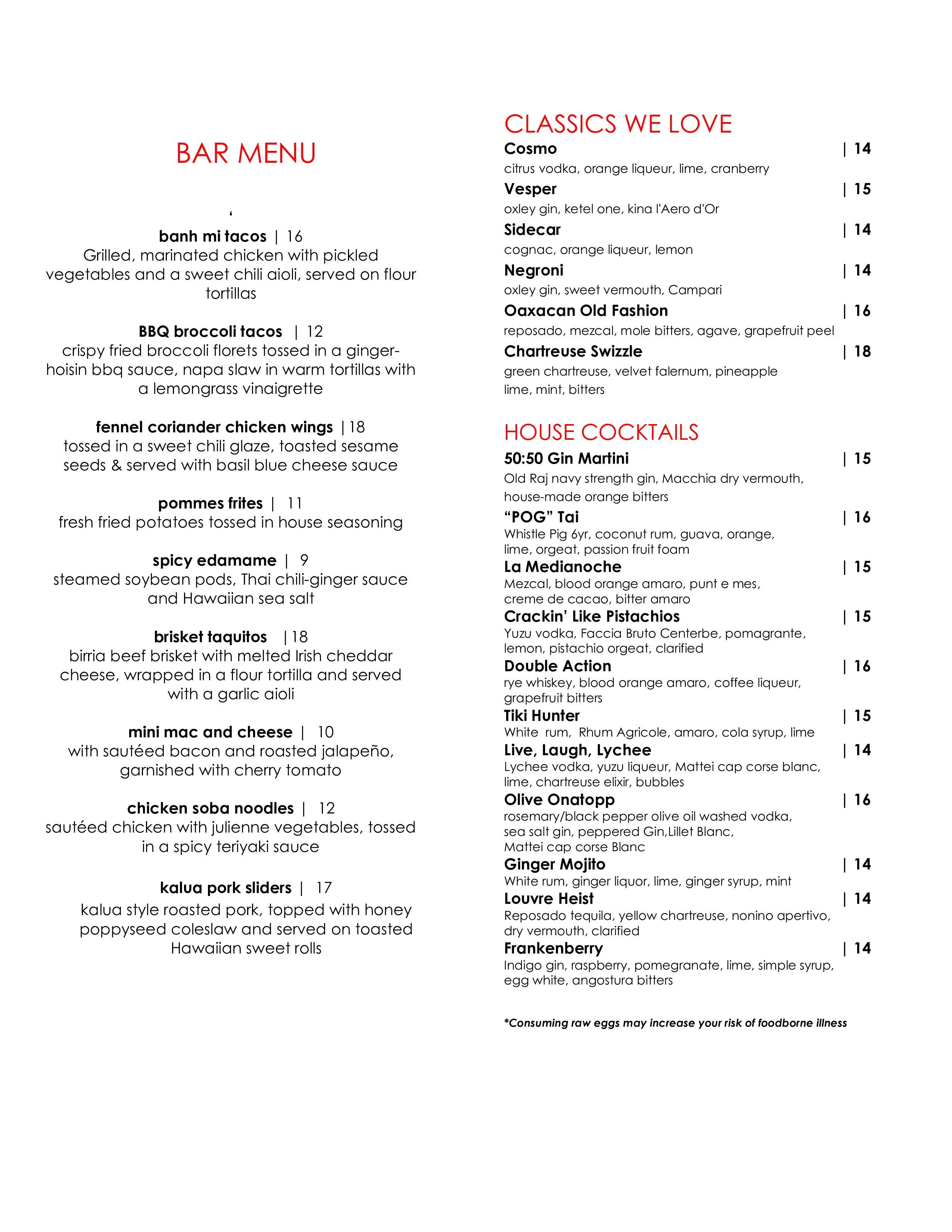 Restaurant Menu & Lounge Menu